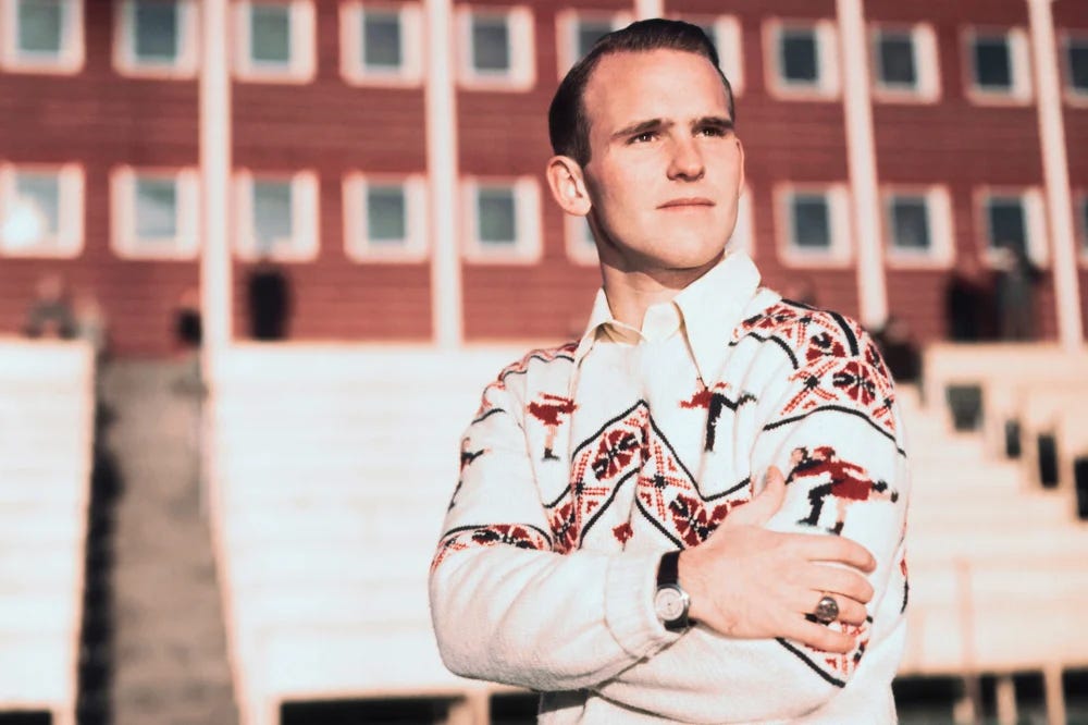 Button’s iconic career began at the age of 18, when he stunned the world at the 1948 Winter Olympics in St. Moritz, Switzerland, by becoming the first skater to land a double axel in competition. He followed that groundbreaking achievement by making history again at the 1952 Oslo Olympics, where he became the first skater to land a triple loop and introduced the now-famous “flying camel spin,” also known as the Button camel.