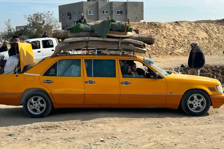 The long-awaited ceasefire, which began on Sunday morning, raised hopes for an end to the war that has claimed the lives of more than 46,900 Palestinians and forced over 2 million people into displacement. Despite the ongoing attacks just before the ceasefire, many families began returning to Rafah, eager to rebuild their lives. Some arrived on foot, others in vehicles, animal-drawn carts, or bicycles, carrying only a few belongings.