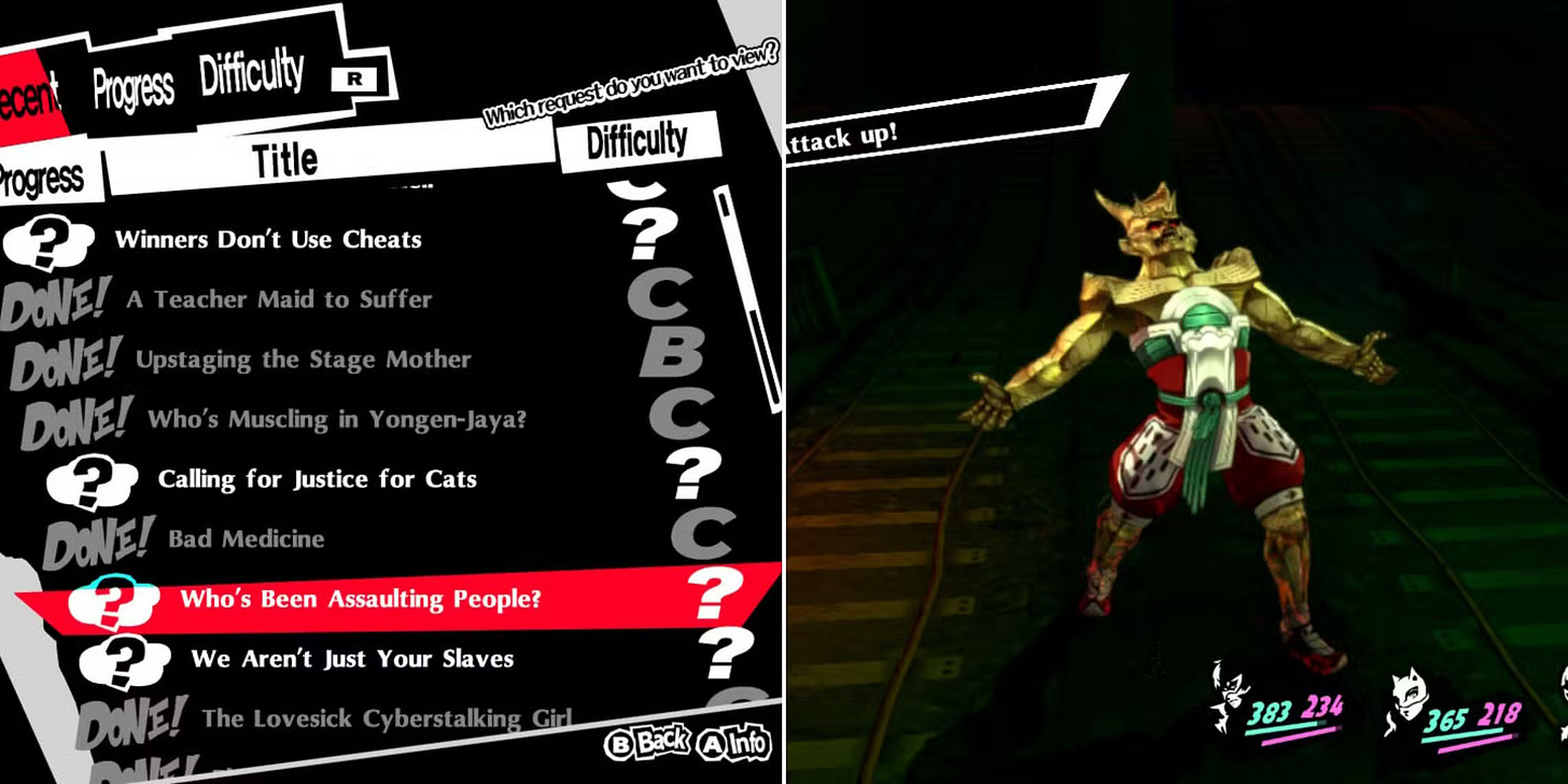 yal, Requests are side quests that allow Joker to hunt down individuals with twisted desires in the depths of Mementos. These missions not only provide the opportunity to defeat challenging mini-bosses but also reward you with useful items and experience points. One of the intriguing Requests is Who’s Been Assaulting People, which will have you chasing down an assailant lurking in Mementos.